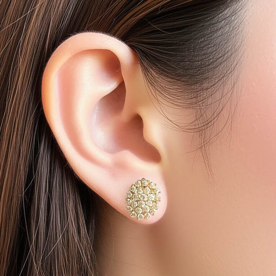 These exquisite stud earrings feature a dazzling cluster of brilliant-cut premium cubic zirconia, meticulously set in luxurious 14K gold. The design creates a sophisticated and radiant look, perfect for adding a touch of elegance to any outfit, from everyday wear to special occasions.