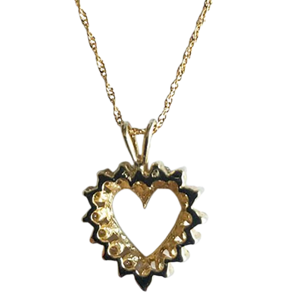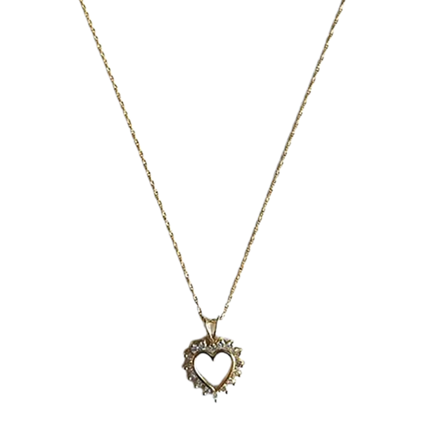 This exquisite 14K gold necklace features a delicate open heart pendant, beautifully encircled by sparkling diamond accents. Suspended from a classic gold chain, it's a timeless piece perfect for adding a touch of romance and elegance to any outfit.