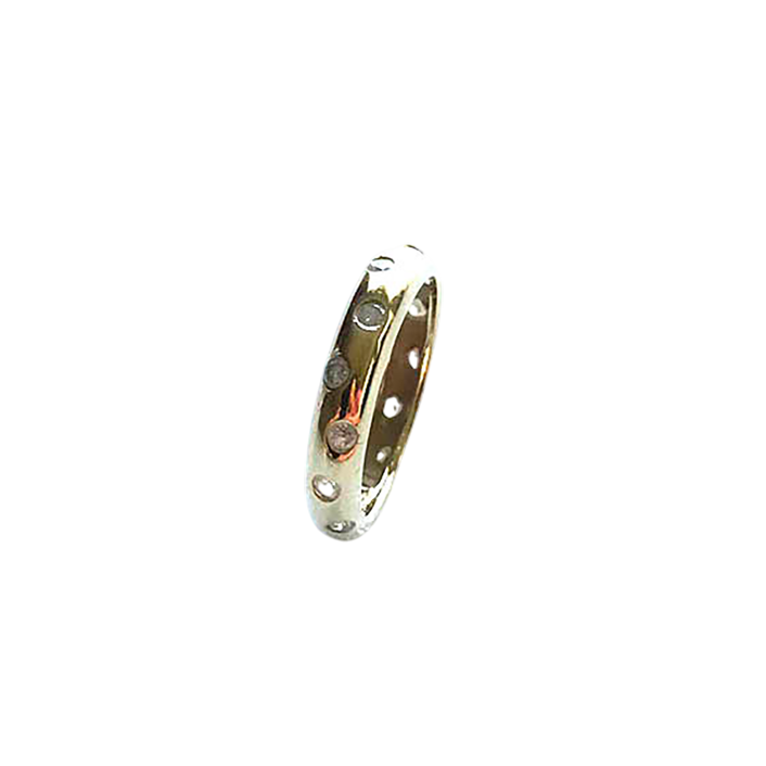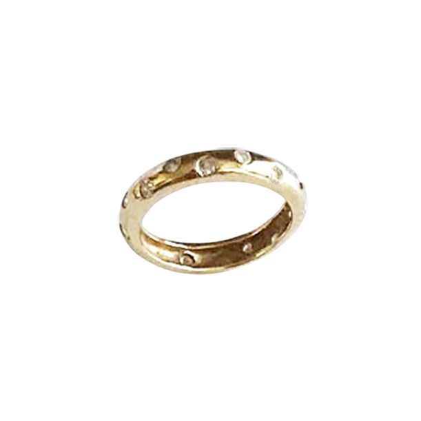 This elegant 14K gold ring features a continuous circle of sparkling stones, set directly into the band. Its timeless design makes it a versatile piece, suitable for an anniversary, a wedding band, or a stylish everyday accessory.
