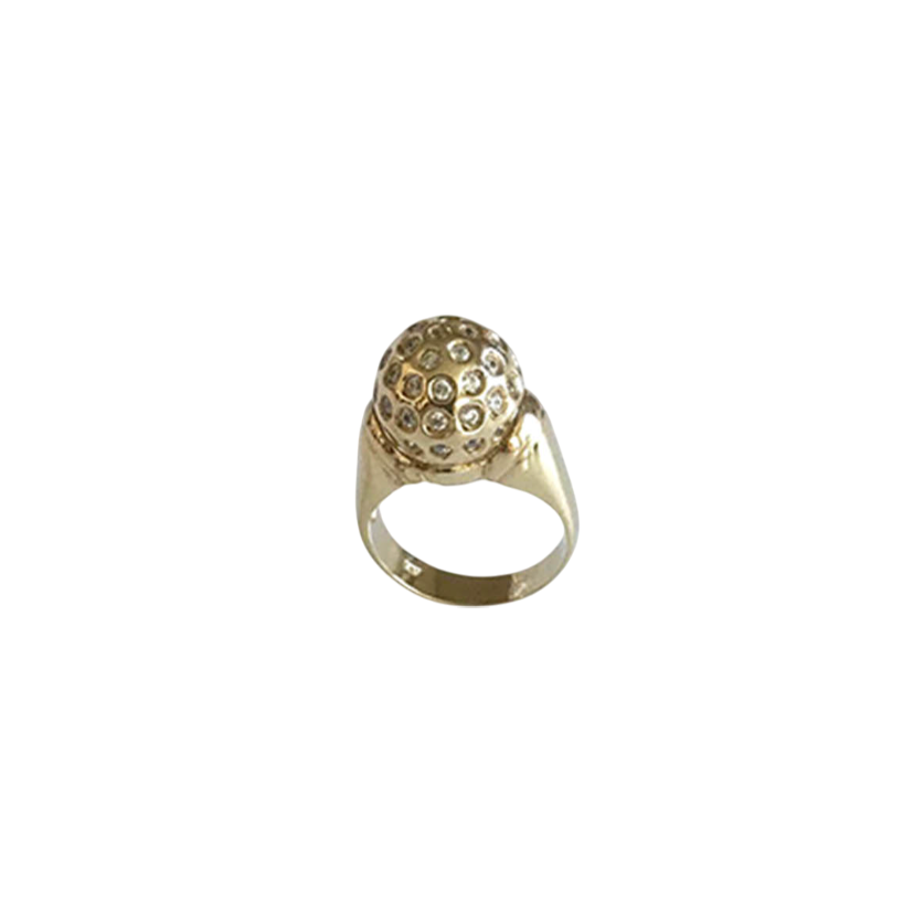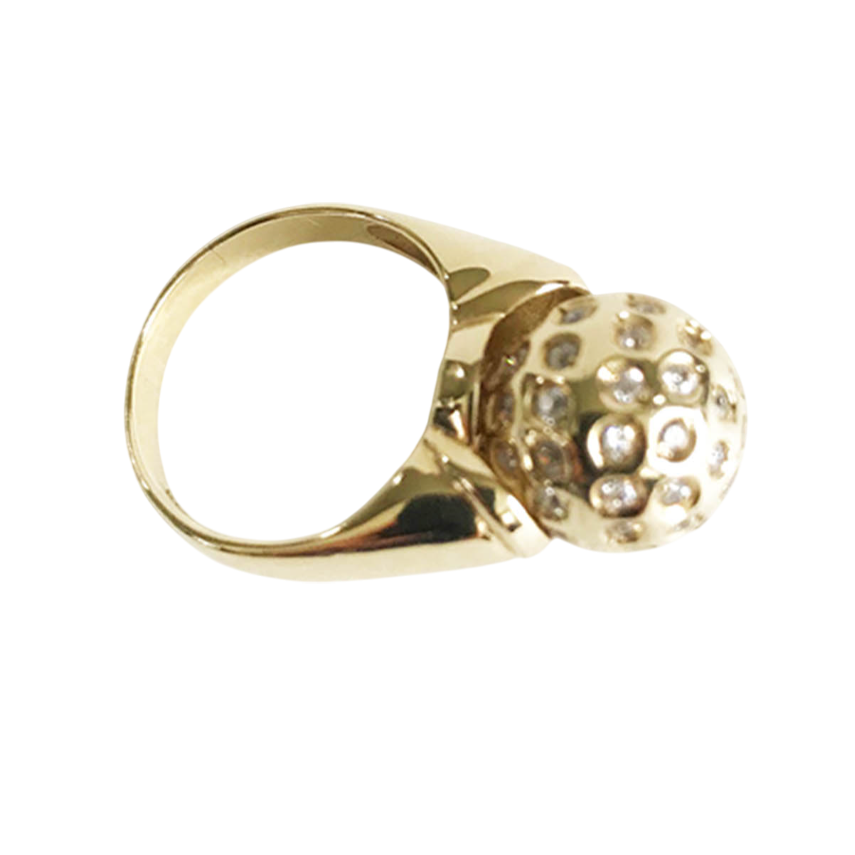 This exquisite 14K gold ring features a striking dome design, completely covered in brilliant pavé-set Lap created gem stone, creating a luxurious and sparkling statement piece.