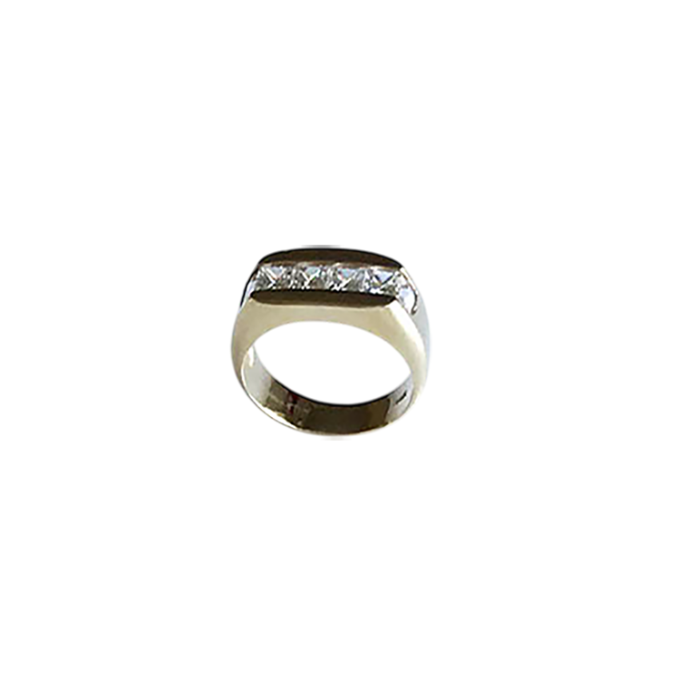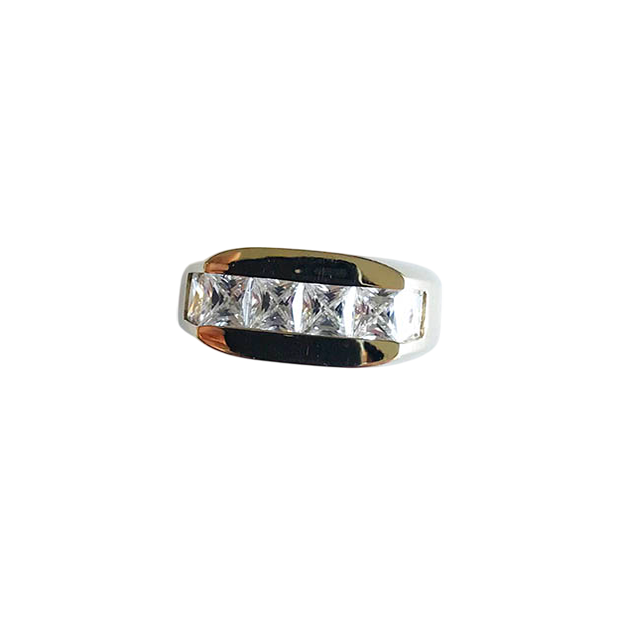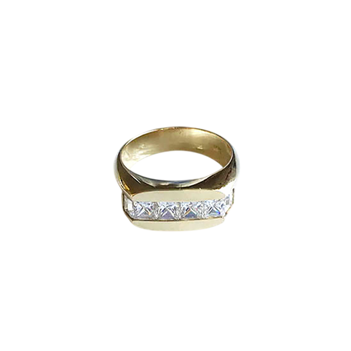 This elegant 14K yellow gold ring features a striking channel setting adorned with brilliant, baguette-cut cubic zirconia. Its sleek design and sparkling make it a perfect choice for a wedding band, anniversary gift, or a sophisticated everyday accessory.