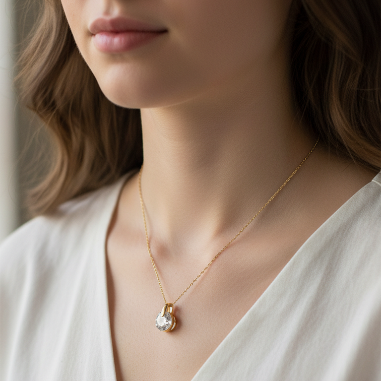 This elegant and minimalist charm features a single, brilliant round-cut premium cubic zirconia securely set in a 14K yellow gold bail. Its classic solitaire design makes it a versatile piece, perfect for adding a subtle touch of sparkle to a delicate necklace or as a timeless addition to a charm bracelet.