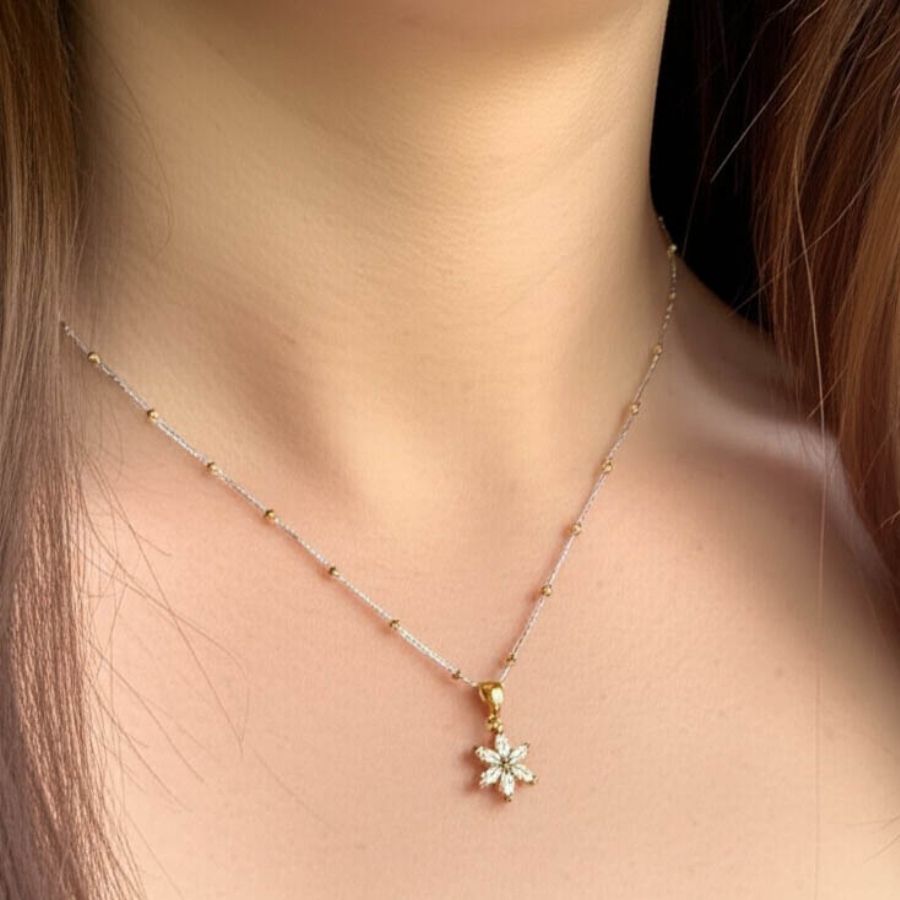 Elegant Two-Tone Gold Chain with Flower Charm Necklace