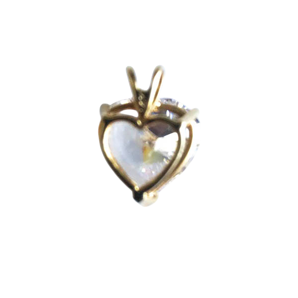 "Adorn yourself with this stunning 14K gold charm, showcasing a magnificent heart-cut premium cubic zirconia. The high-quality CZ offers exceptional brilliance and fire, rivaling a diamond, all secured within a durable and elegant 14K gold setting."