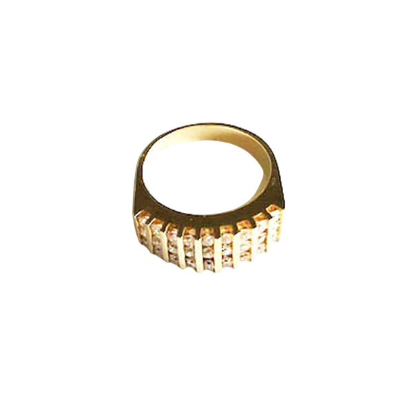 This elegant ring features a polished gold-tone band adorned with multiple rows of dazzling, pave-set clear stones. Its classic design offers a sophisticated sparkle, making it a versatile accessory for any occasion.