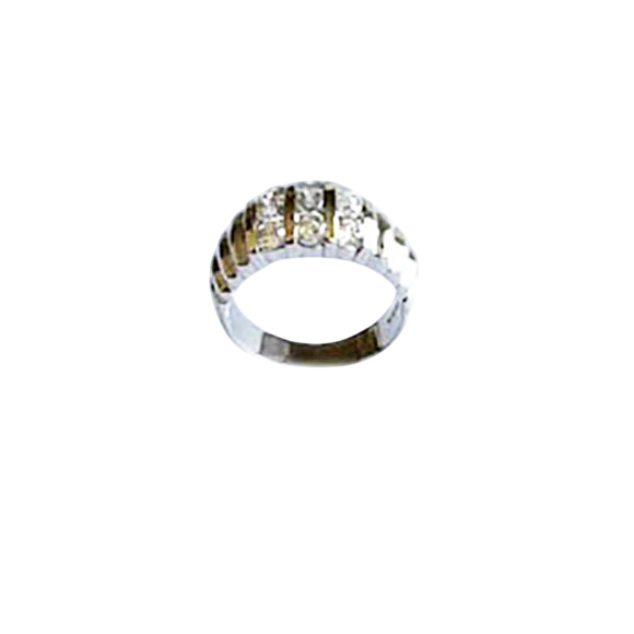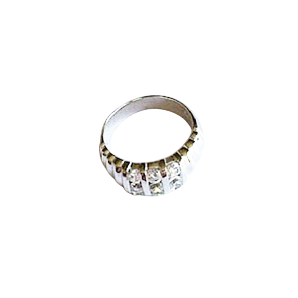 This elegant ring features a polished sterling silver band adorned with multiple round-cut stones. The stones are set in rows across the top of the band, creating a sparkling and sophisticated look. This versatile piece would make a beautiful addition to any jewelry collection, perfect for everyday wear or special occasions.